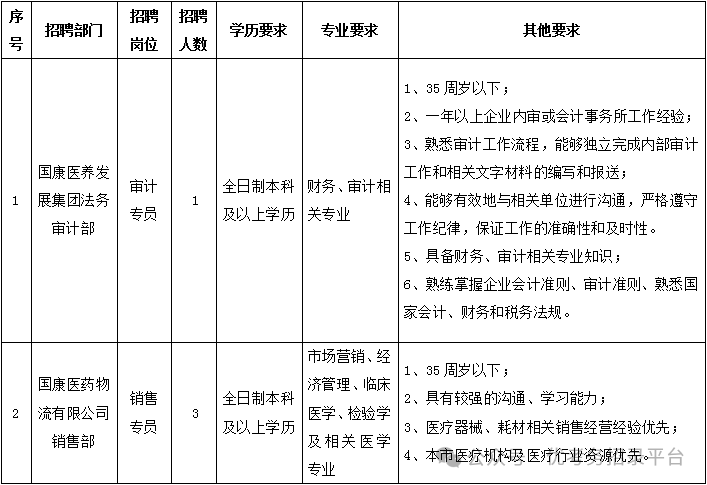 1、负责建立和完善集团公司内部审计制度,规范审计工作流程,提高审计工作效率;2、负责集团公司内部审计方案的制定、实施和评价,建立集团内部审计档案;1、掌握本公司有关业务流程。包括拿计划、送货、拿回执、对账、回款、退货、按季度对账填写对账单、现场接货等;3、与医院客户协调各类问题,使工作顺畅;与供应商协调供货、退货等问题,保证销售,无损失;4、与供应商协调供货、退货等问题,保证销售,无损失。1、政治素质好,牢固树立“四个意识”,坚定“四个自信”,做到“两个维护”,坚决贯彻执行党的路线方针政策;2、拥护中华人民共和国宪法,政治思想好、组织纪律观念强、服从命令、听从指挥;3、工作作风正,处事公道,作风民主,严于律己,遵纪守法;1、现役军人、试用期内的公务员和事业单位工作人员、未满最低服务年限或未满约定最低服务期限的人员、普通高等学历教育在读学生;2、未经原单位同意或行业有规定不得应聘的机关事业单位正式在编人员;3、受到党纪政纪处分期限未满或期满影响使用的、正在接受组织调查尚未作出结论的、曾因犯罪受过刑事处罚的、被开除公职的以及失信被执行人和法律法规规定不得参加招聘的其他情形人员。招聘流程及工作委托第三方机构组织实施。具体流程如下:本次招聘全部采取网上报名的方式进行,不接受现场报名,自2024年1月30日起通过公众号“优考务招录平台”向社会公开发布招聘信息,请考生及时关注公众号;1、报名邮箱:hbyoukaowu@163.com;2、报名须知:报名人员需提交如下材料(按以下顺序进行排序后提交电子版)(报名邮箱不要更换,以防接收不到考试相关信息,如因考生个人原因未收到信息影响考试,后果自负!)(4)学信网下载的6个月有效期内《教育部学历证书电子注册备案表》电子版;(7)学历为境外学历的,须提供国家教育部留学服务中心出具的《国外学历学位认证书》扫描件。报名人员请将上述材料以电子版形式整理成一个压缩文件,压缩文件及邮件标题请以“姓名+性别+应聘岗位”命名,发送至邮箱:hbyoukaowu@163.com。工作人员对报名人员的身份、年龄、学历、专业等情况进行初审,并根据报名者提供的材料进行资格审核;3、报名者提供的资料必须真实可靠,如发现填写的信息不属实或弄虚作假不守承诺的,一经查实,取消考试资格或聘用资格,情节严重的记入诚信档案,后果由考生自负。资格审查贯穿招聘过程始终,在任何一个环节发现有资格不符的,取消其考试资格或聘用资格。严重弄虚作假的要追究相应法律责任;4、此次公开招聘的各个环节将以《通知》方式在“优考务招录平台”微信公众号上发布,不再另行通知。报考人员须及时关注公众号信息,以免影响考试;5、公告日期:2024年1月30日至2024年2月8日;6、报名期限:2024年1月30日8:30至2024年2月8日17:00;7、资格初审截止时间为2024年2月9日12:00;8、考生提交资料,审核无误后需缴纳报名考务费100元(报名成功后不予退费),由第三方招考公司代为收取,用于此次招聘考试工作经费,缴费截止时间:2024年2月9日17:00。未在规定时间内缴纳考务费的视为放弃报名;9、考生务必牢记报名缴费截止及打印 《笔(面)试准考证》、考试等重要时间,凡未在规定时间完成相关操作的,视为自动放弃;报名和考试期间务必保管好个人证件和信息,因个人原因造成丢失、被他人盗用或信息被恶意篡改而影响报名和考试的,责任自负。1、笔试时间、地点等另行通知,考生应及时关注“优考务招录平台”公众号,防止错过考试等重要信息;2、资格初审合格人员进入考试环节。考试分为笔试和面试两项,总分均为100分。笔试成绩、面试成绩及总成绩均按“四舍五入法”保留到小数点后2位数字;3、笔试为闭卷考试,笔试委托第三方命题并阅卷,笔试内容为《公共基础知识》《职业能力测验》;4、笔试时,考生凭《笔试准考证》、二代居民身份证原件入场,缺少证件的考生不得参加考试;5、按招聘岗位1:3比例从高分到低分确定进入面试,比例内末位成绩并列者全部进入。不足1:3比例的,全部进入面试。1、面试时间、地点等另行通知,考生应及时关注“优考务招录平台”公众号,防止错过考试等重要信息;2、本次面试采取结构化面试方式进行,时间5分钟,满分100分。主要测评报考人员仪容仪表、语言表达、应变能力等;3、面试时,考生凭《面试准考证》(A4纸张,黑白、彩色均可)、有效期内的二代居民身份证原件入场,缺少证件的考生不得参加考试。面试过程全程录像,确保面试工作的公平与公正。面试时,按抽签决定面试顺序。考生只准报抽签顺序号,不得报姓名及个人信息,否则视为违纪,现场取消考试资格。4、个人总成绩。个人总成绩=笔试成绩×40%+面试成绩×60%。综合成绩保留2位小数。1、根据个人总成绩,按从高分到低分的原则,确定进入体检人员名单。末位考生总成绩如出现并列,按以下顺序确定进入体检考生:笔试成绩较高的、学历较高的;2、参照《国家公务员录用体检通用标准》执行,体检费用由参加体检人员负担。如出现体检不合格者或自动放弃者,递补原则同体检确定人选环节进入体检。1、体检合格的考生,确定为考察政审对象。考察工作重点:考察政治素质、道德品行、能力素质、学习和工作表现、遵纪守法、廉洁自律等方面的情况。2、政审不合格或自动放弃产生