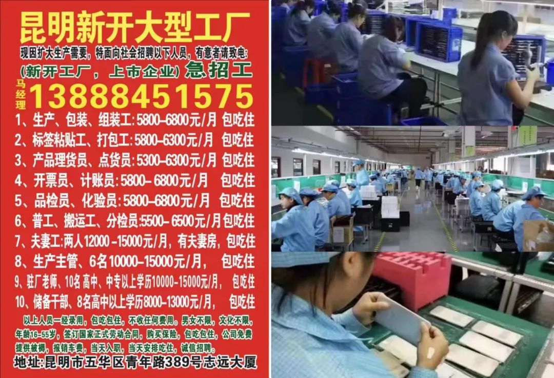 1、包装工、生产工、组装工:5500-6500元/月包吃住