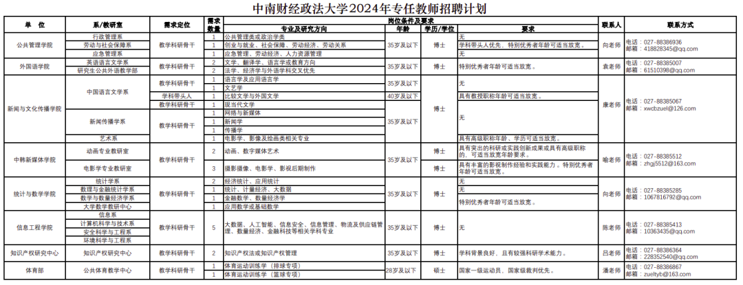 网上报名,登录中南财经政法大学教师招聘网站http://zp.zuel.edu.cn申请岗位,同时发电子版简历和相关证明材料给上图中的联系人。
