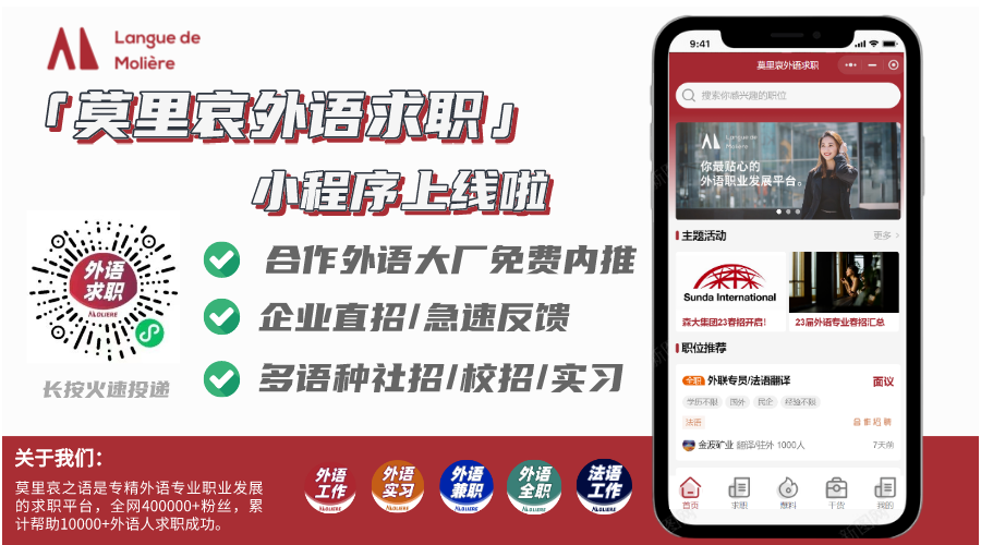 2.英语或法语、西语可作为工作语言;有人资相关实习经验者优先。
