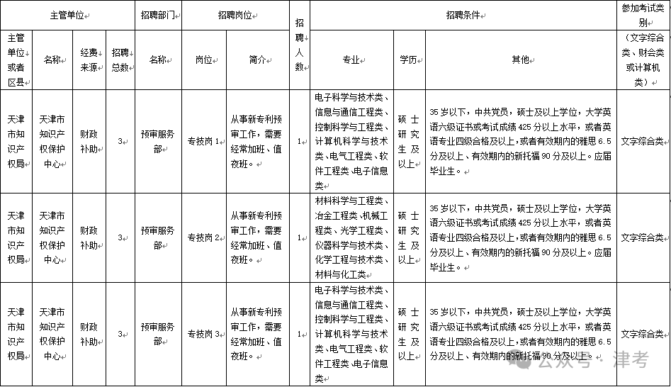 天津市知识产权局2024年事业单位公开招聘工作人员3人