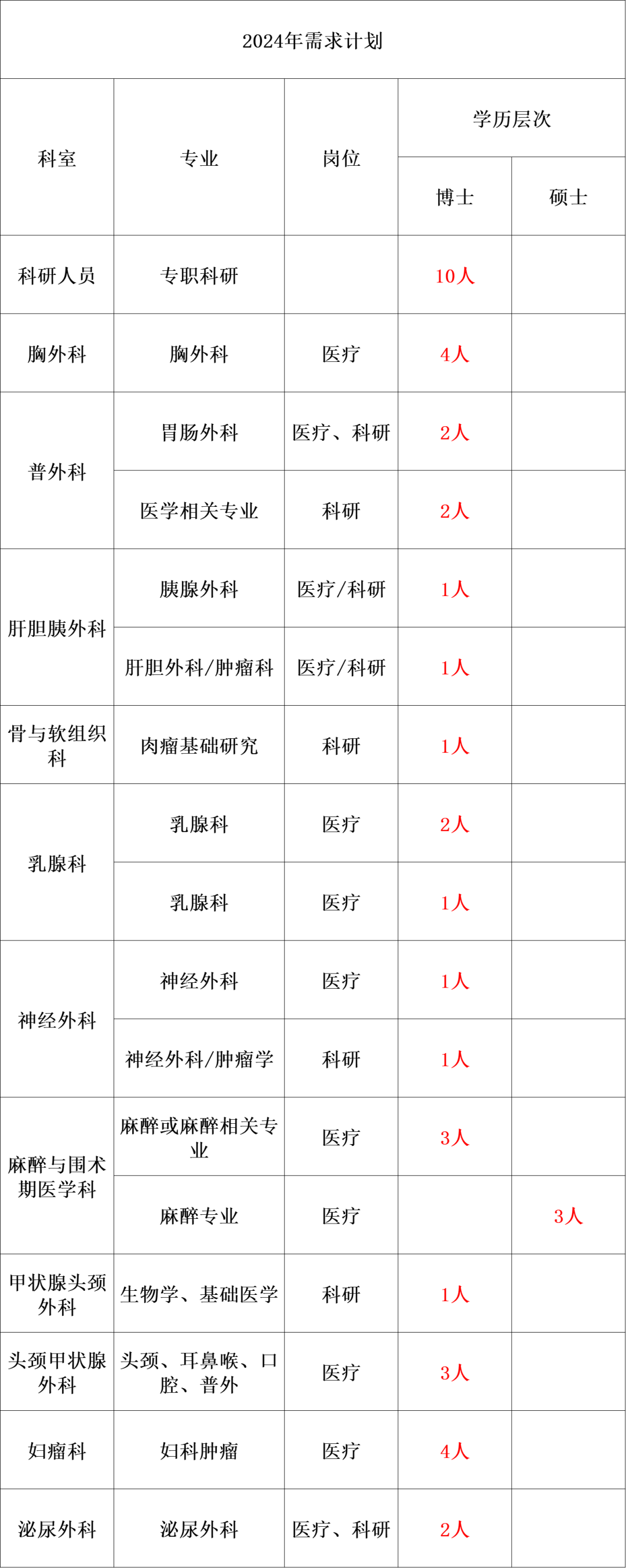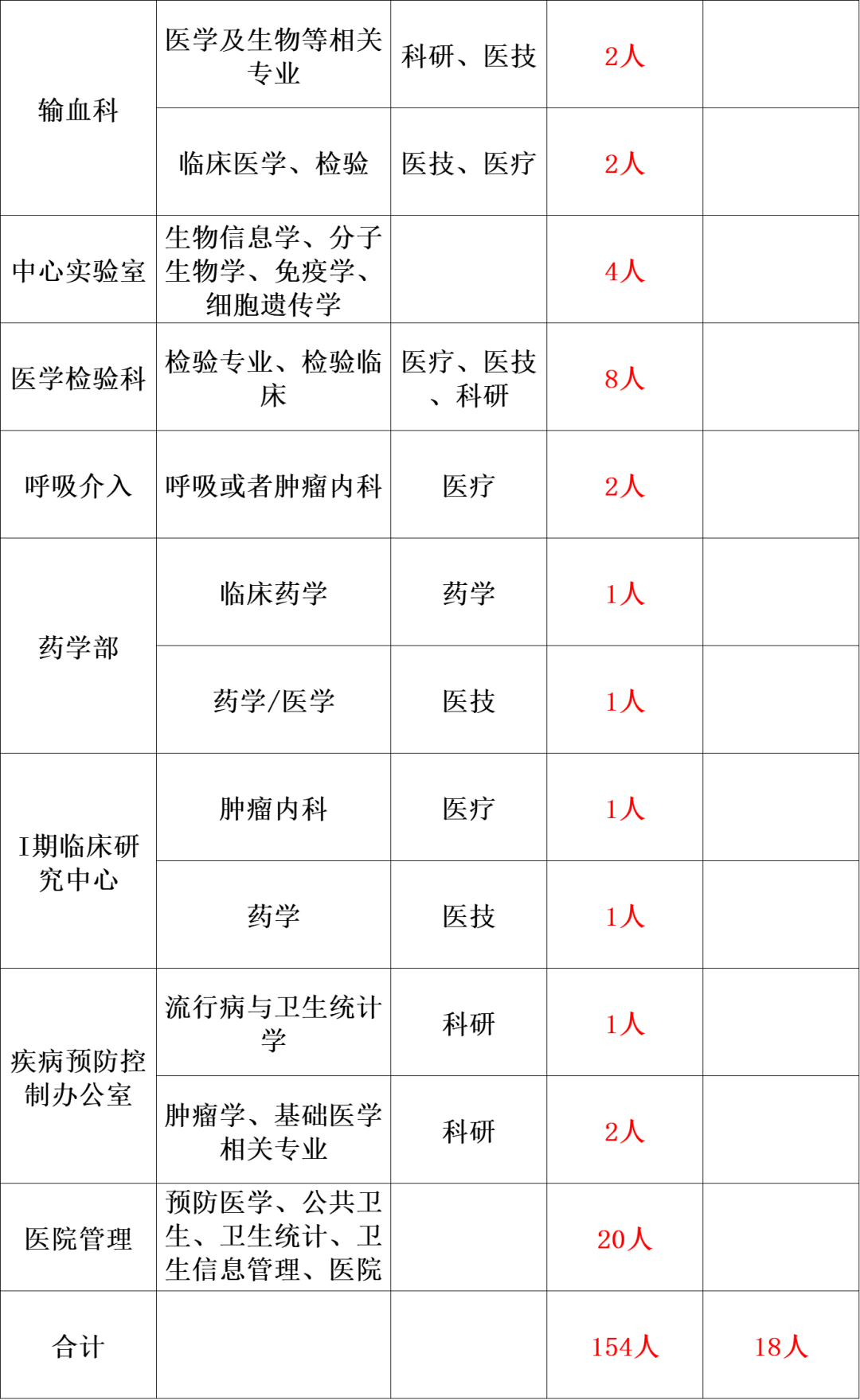 根据医院发展需要,面向国内外招聘专业技术人才点击获取职位表,现将招聘有关事宜公告如下:
