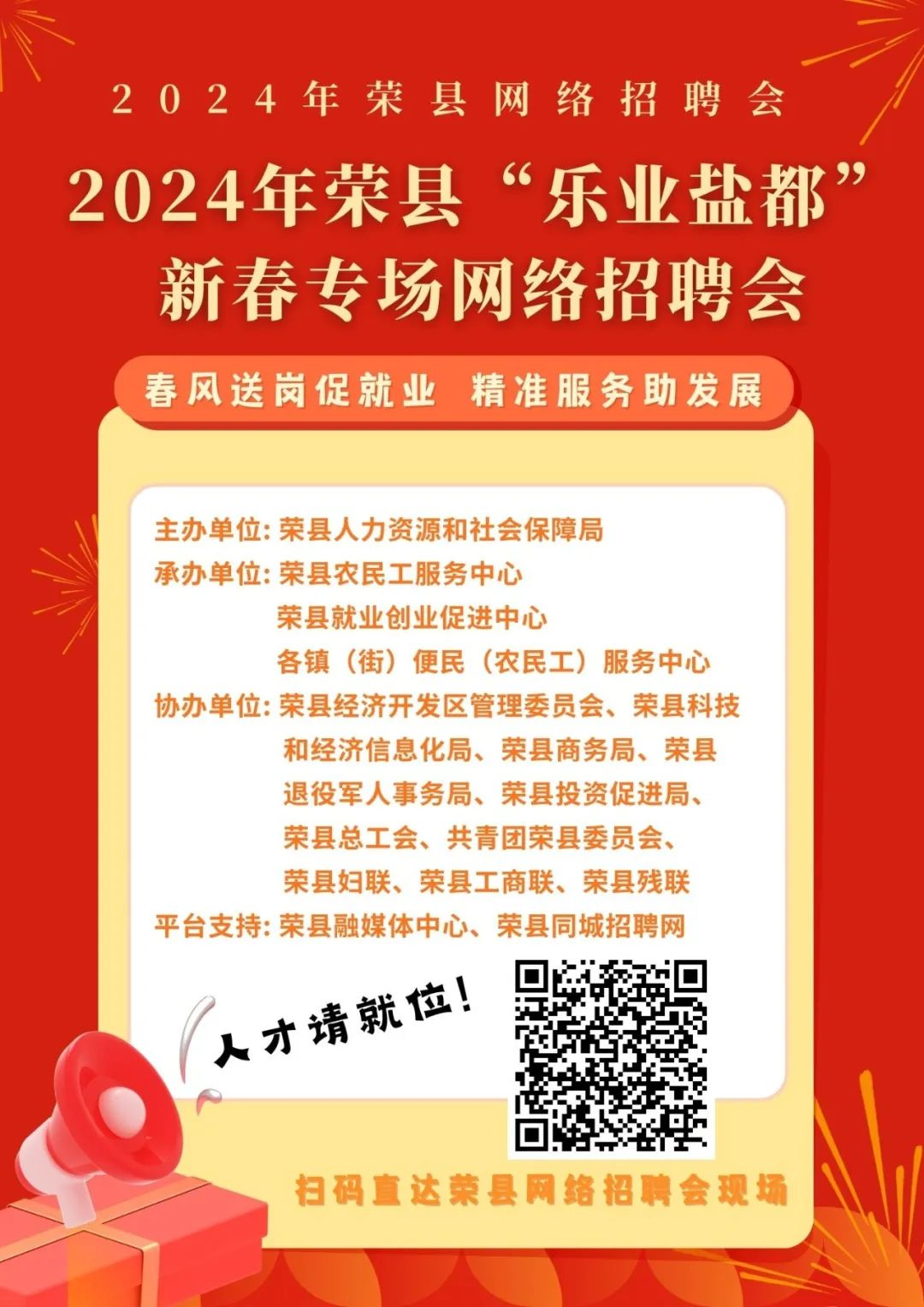 ★2024年荣县第一场“乐业盐都”新春专场网络招聘会火热进行中!共有90家企业参会,拟招聘岗位127个,拟招聘人数1405人。