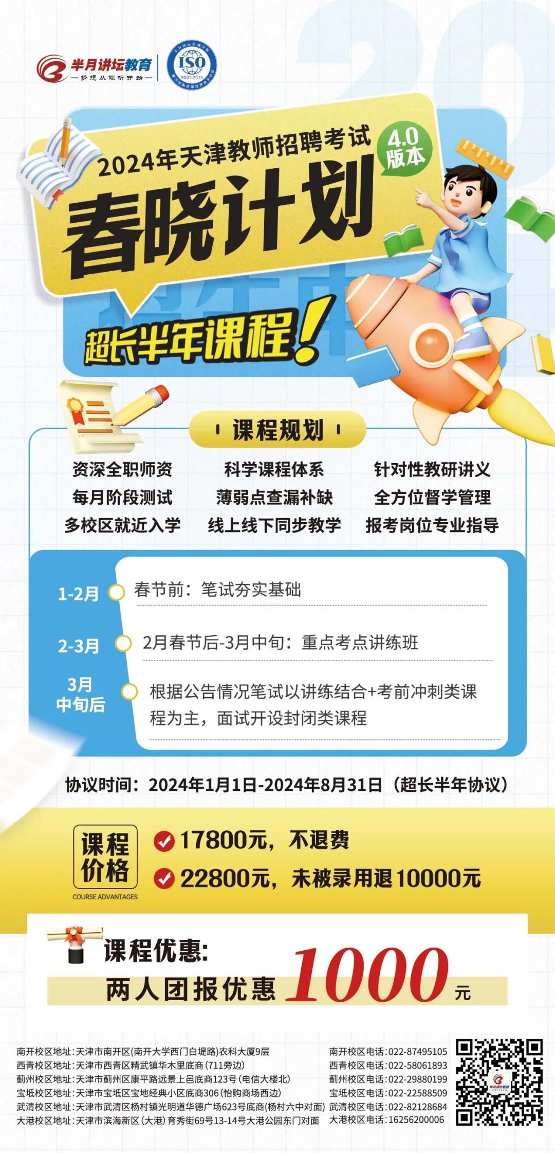 面试与往年变化较大的有:东丽区的课堂能力教学,往年通常考说课,2023年考核形式为试讲,2024年以具体公告为准。