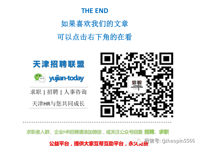 订阅可搜索公众号(tjzhaopin5566 管理员 微信 yujian-today)
