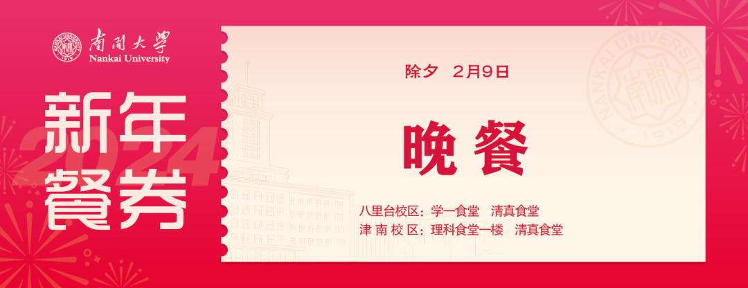 学校将进行校院两级慰问,倾情奉献美食暖胃餐券、慰问礼包和新春福袋等物资,同时举办家书套餐、迎春南开系列活动,为留校学生打造一个温馨喜庆的节日氛围。各学院也将通过多种方式了解同学需求,尽心尽力为同学们送去温暖的新春慰问~