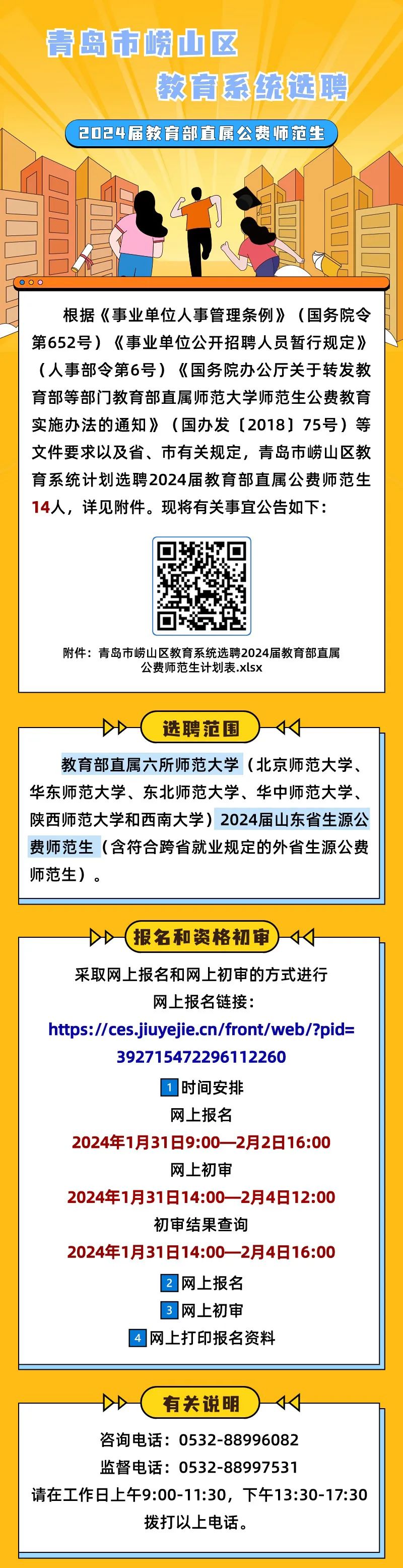 >事业编44人!最后一天!市南区、崂山区选聘教师