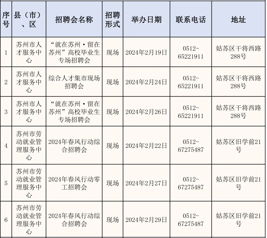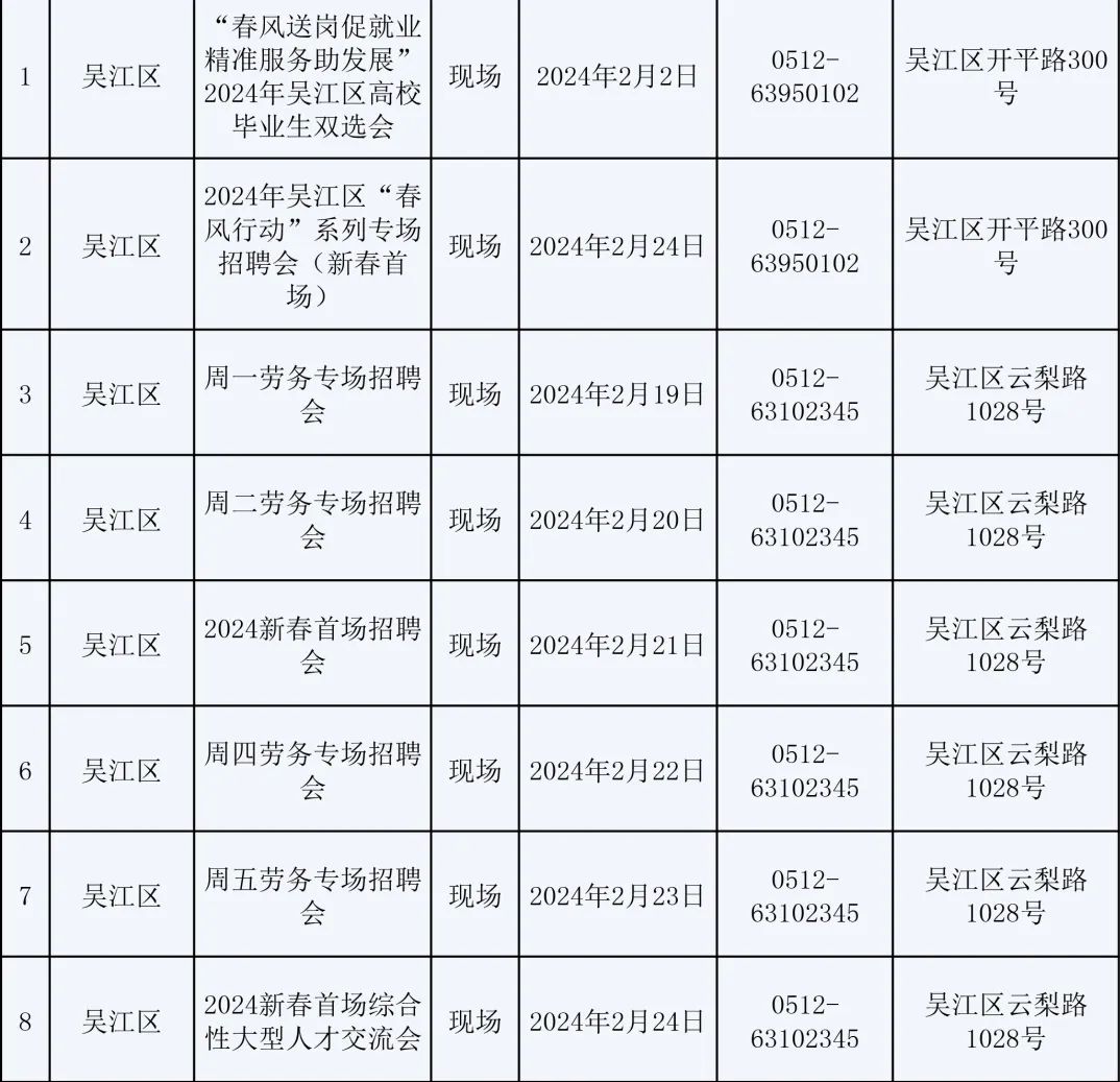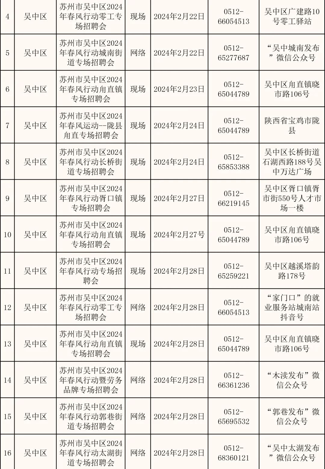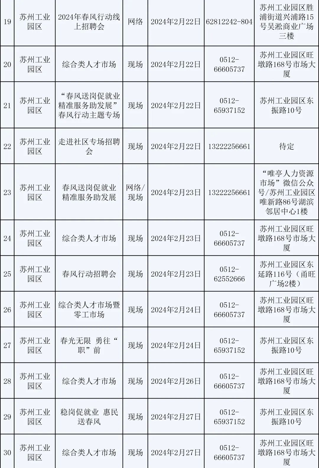 为做好春节前后劳动者换岗流动高峰期和企业复工复产关键期就业工作,苏州人社部门于1月25日至4月8日开展以“春风送岗促就业 精准服务助发展”为主题的春风行动就业服务专项活动,通过进一步畅通现场、网络、直播等丰富多样的求职招聘渠道,分类推出“大而全”“专而精”“小而美”等各种形式的招聘会,实现周周有招聘、送岗到身边。