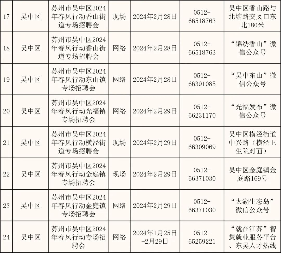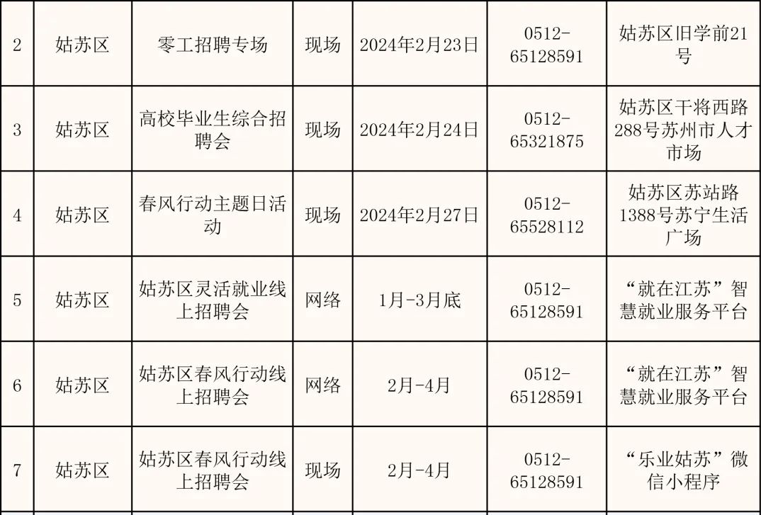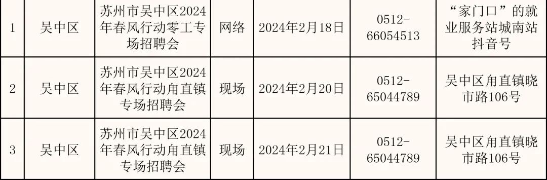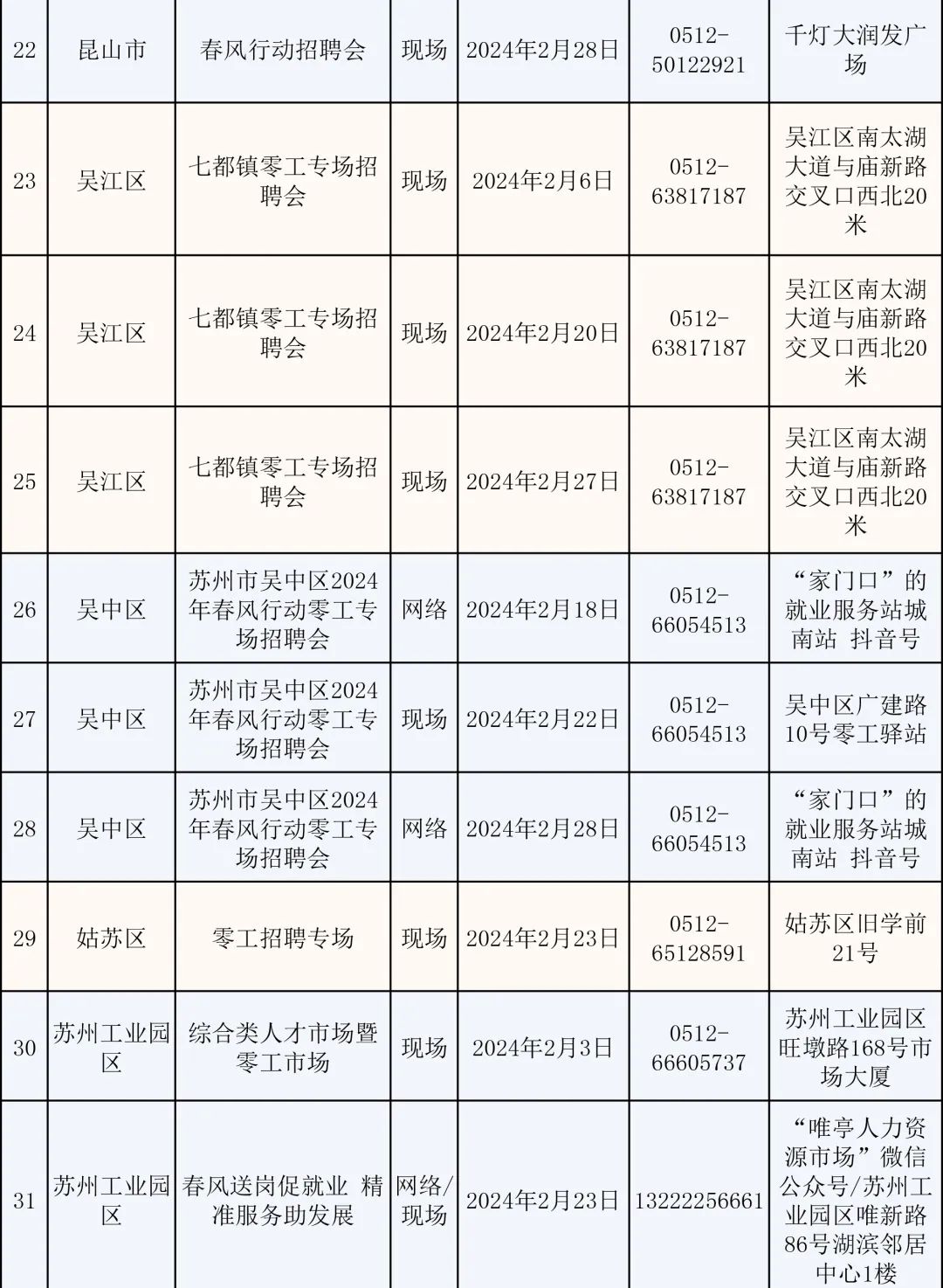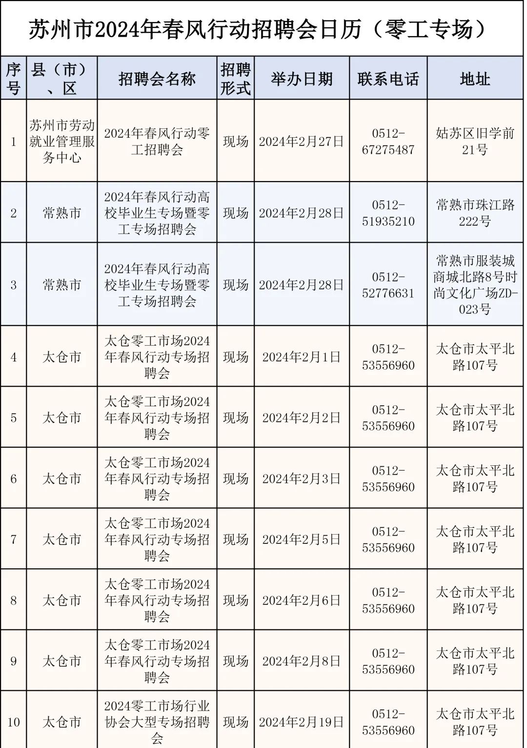 为做好春节前后劳动者换岗流动高峰期和企业复工复产关键期就业工作,苏州人社部门于1月25日至4月8日开展以“春风送岗促就业 精准服务助发展”为主题的春风行动就业服务专项活动,通过进一步畅通现场、网络、直播等丰富多样的求职招聘渠道,分类推出“大而全”“专而精”“小而美”等各种形式的招聘会,实现周周有招聘、送岗到身边。