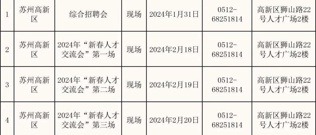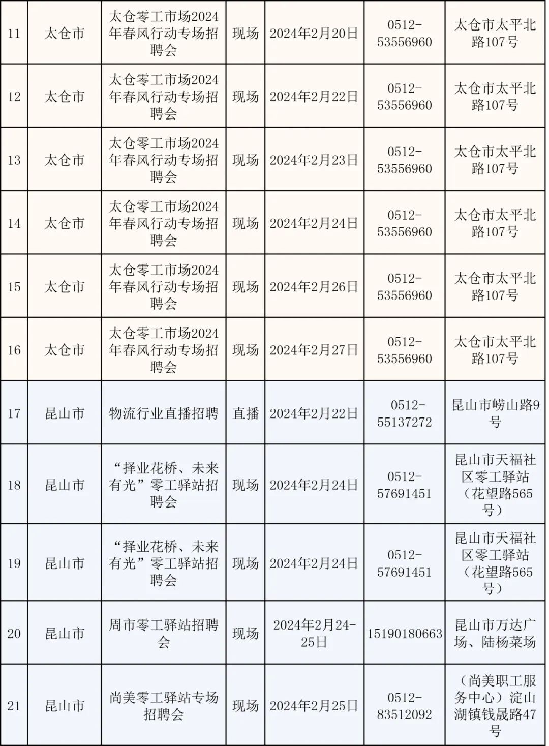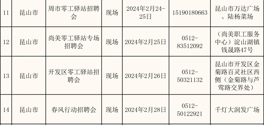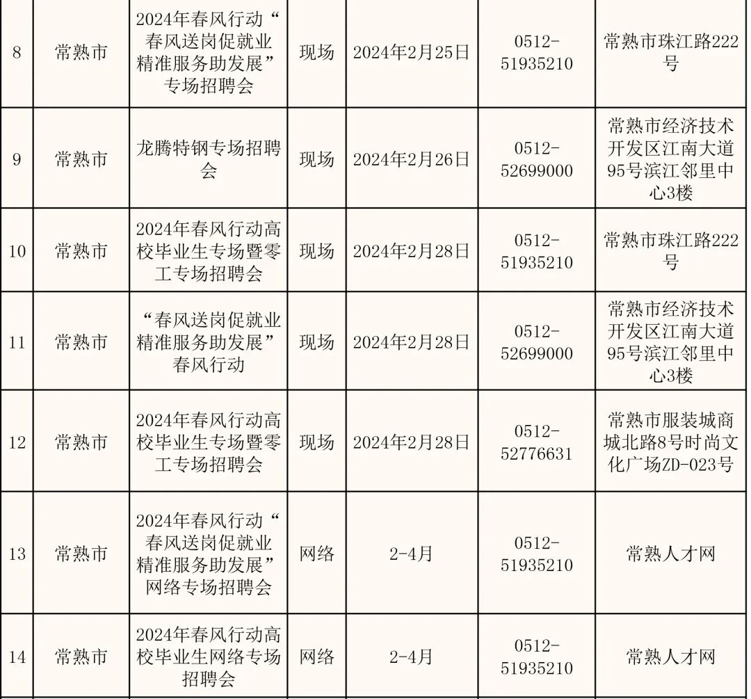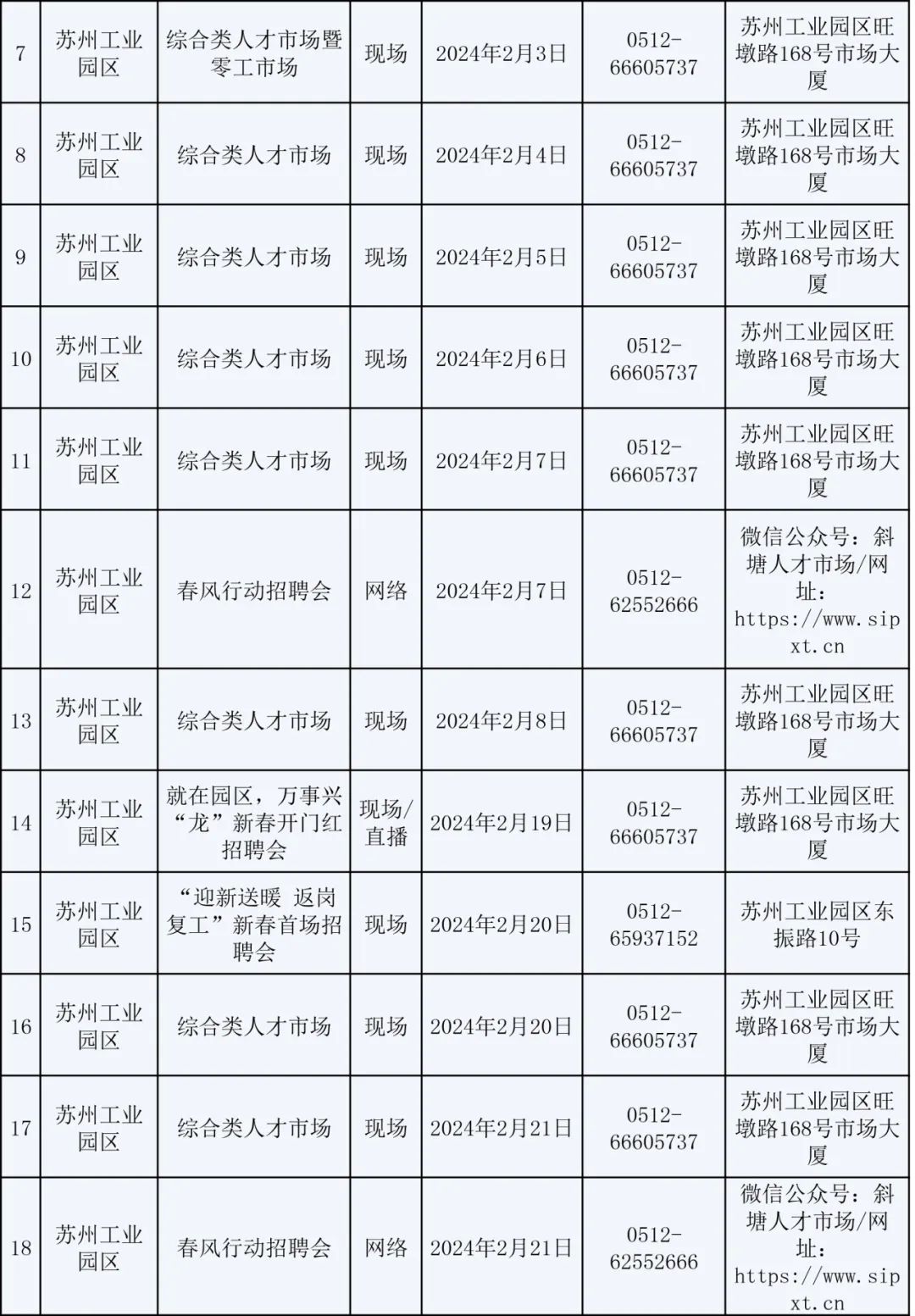 为做好春节前后劳动者换岗流动高峰期和企业复工复产关键期就业工作,苏州人社部门于1月25日至4月8日开展以“春风送岗促就业 精准服务助发展”为主题的春风行动就业服务专项活动,通过进一步畅通现场、网络、直播等丰富多样的求职招聘渠道,分类推出“大而全”“专而精”“小而美”等各种形式的招聘会,实现周周有招聘、送岗到身边。