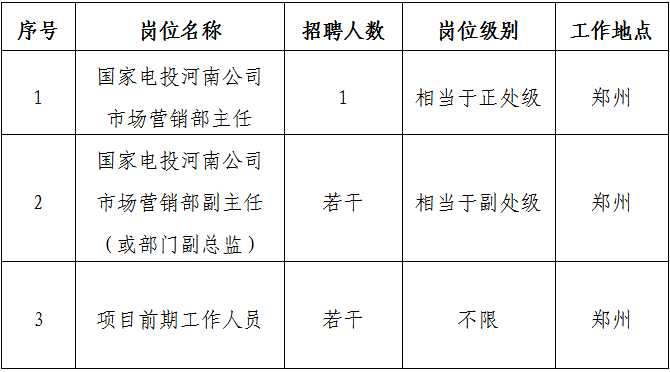 根据集团公司“2035一流战略”,结合河南公司工作及项目前期业务需要,面向集团公司系统内外公开招聘人才,热烈欢迎各类人才加盟。