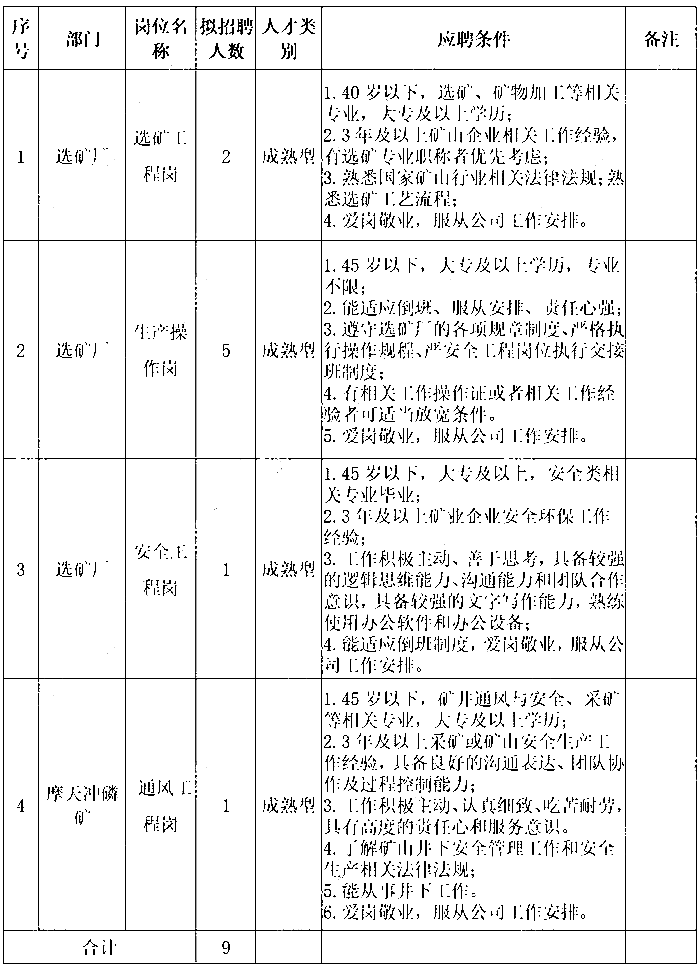 4.具有正常履行岗位职责的身体条件,能适应矿山企业井下工作,体检结果符合应聘岗位相关要求。