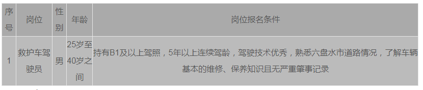 盘州招聘号,盘州招聘,盘州招聘求职的好平台,每日发布考试信息、招聘会、行业动态、人事行政、客服、财务销售、快递员、送餐员、外卖员、司机、汽车维修、护理、房产中介、餐饮招聘、普工、保洁、保姆月嫂等工作招聘信息,欢迎您的关注!根据医院业务发展需要,现拟面向社会公开招聘编外救护车驾驶员1名。现将有关事宜公告如下: