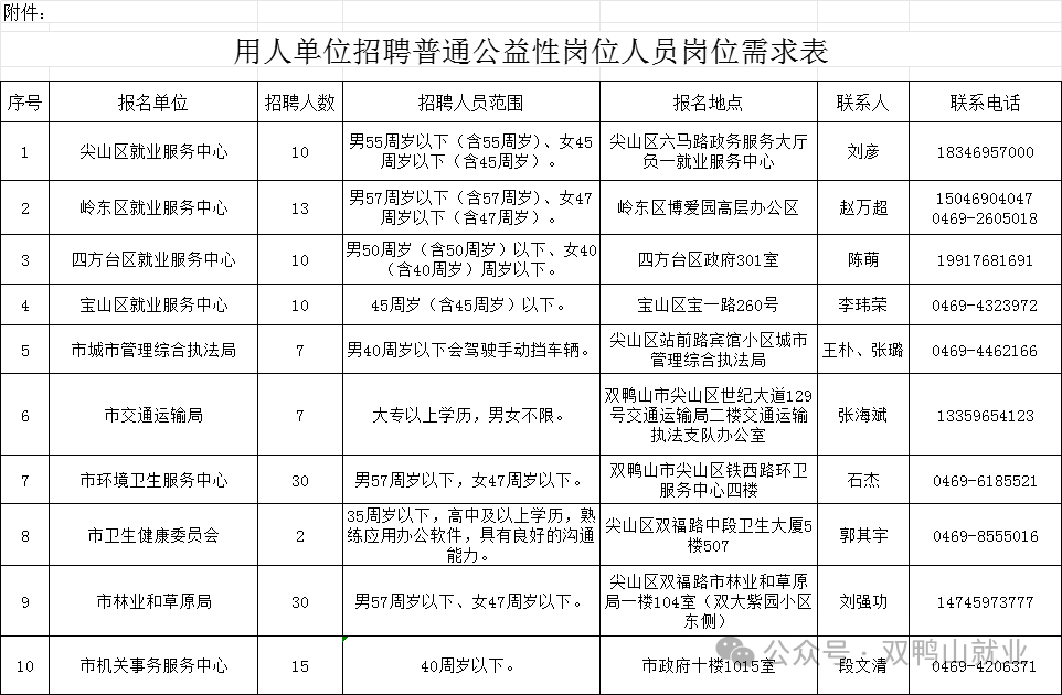 双鸭山市本级招聘普通公益性岗位人员公告
