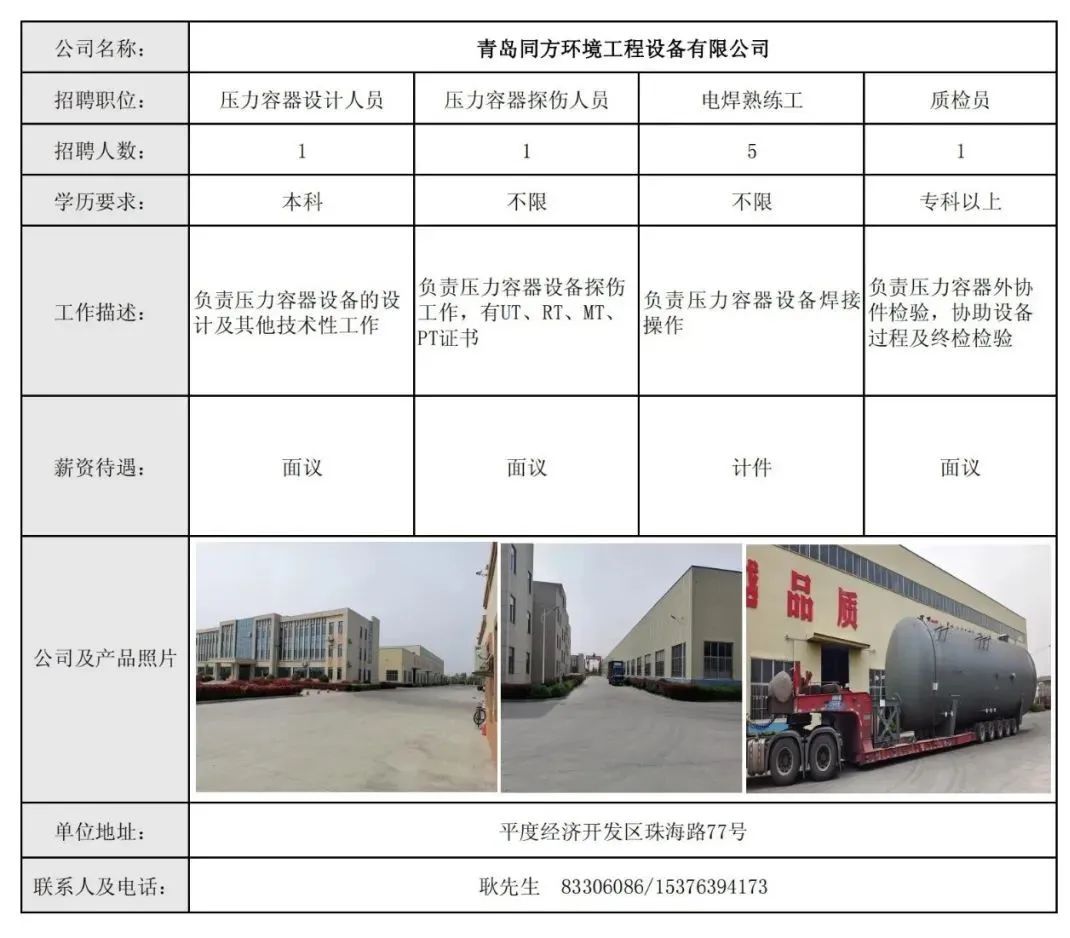 招聘第611期:泰胜、东狮集团、内蒙古汇能卓正煤化工、东源投资集团