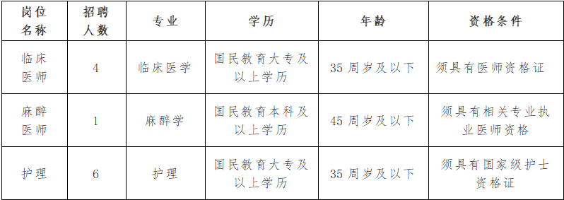 因医院业务发展需求,现面向社会公开招聘编制外医务人员11名,临床医师4名,麻醉医师1名,护理6名,现将有关事项公告如下。
