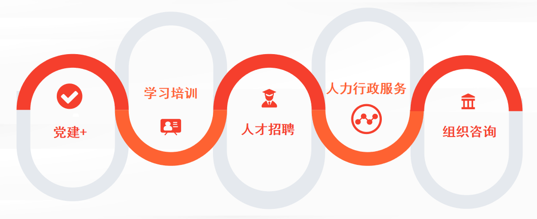 现有党建+产品体系、学习培训产品体系、人才招聘产品体系、人力行政服务产品体系、组织咨询产品体系,打通党建+组织建设全价值链服务,塑造人才的生态圈层,为企业人力资源提供全方位的支撑。