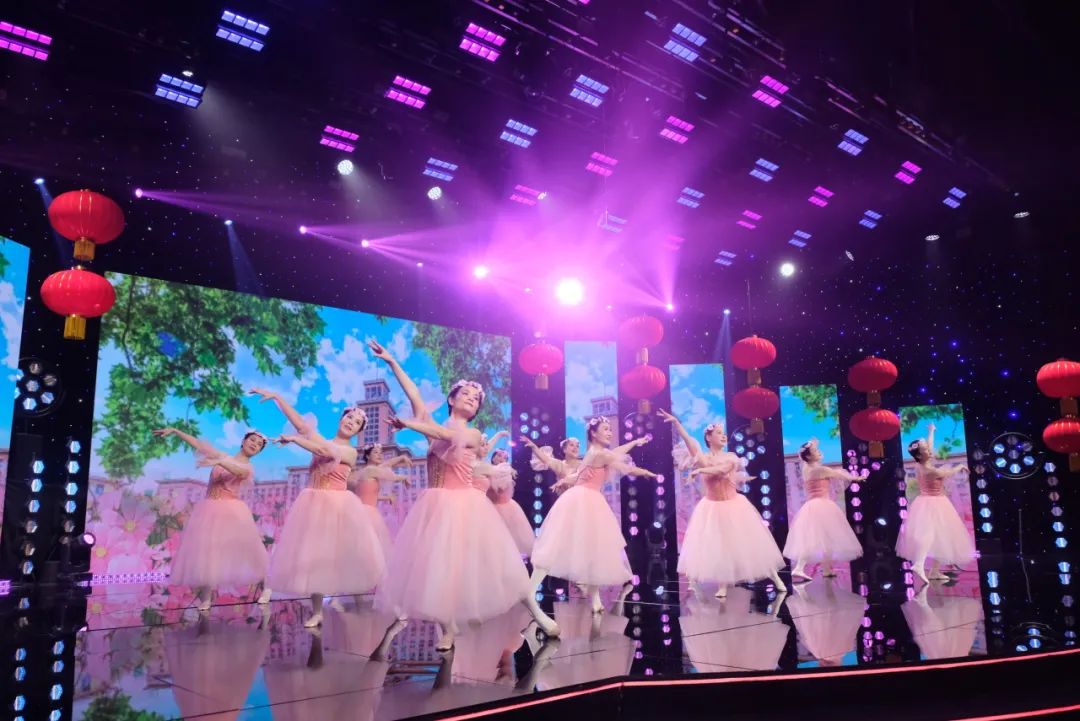 南开大学天津校友会舞蹈团受邀参与本次节目录制,在“第四篇章——年年有彩儿”中表演了芭蕾舞《花之圆舞曲》。《花之圆舞曲》是芭蕾舞剧《胡桃夹子》中最重要的一个舞段,也是柴科夫斯基许多圆舞曲中最杰出的一首,是柴科夫斯基全部作品中的杰作之一。仙女们伴随着竖琴华丽流畅的旋律飘进舞台,在圆号吹奏出的圆舞曲主题旋律中,翩翩起舞,表现出糖果仙子与仙女们欢快喜悦的情绪和轻盈婀娜的舞姿。