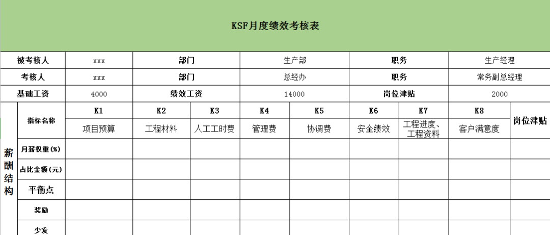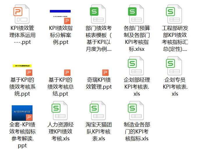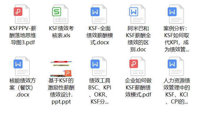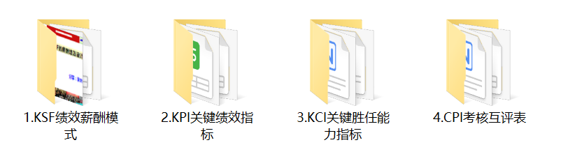 这套资料一共4大模块,包含薪酬绩效考核的KSF(关键成功因素法)、KPI(关键绩效指标)、KCI(关键胜任能力指标)、CPI(一般业绩指标),有模板,有案例。