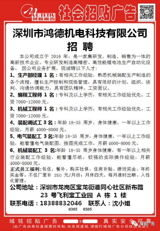 分公司地址:深圳市龙岗区坪地街道人民北路9号2楼