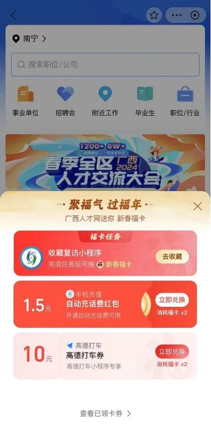 进入广西人才网小程序完成随机任务后