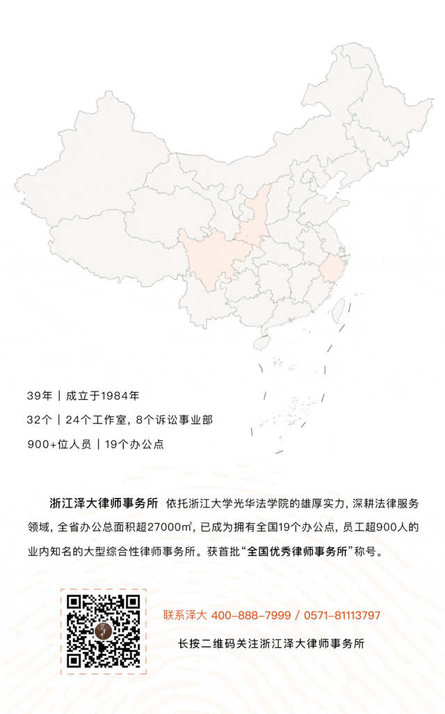 浙江泽大律师事务所由成立于1984年的原浙江浙大律师事务所改制后设立。截至2023年年底,有在册律师和员工900余人,律所规模和执业律师人数在浙江省名列前茅,并先后在省内的金华、舟山、绍兴、宁波等14地和省外的西安、成都设立了分所。依托浙大光华法学院的学术底蕴和人文积累,形成了鲜明的文化特色,具备高度的敬业精神、专业能力和职业素养,为维护客户合法权益提供有效保障。2005年,获评首批“全国优秀律师事务所”。