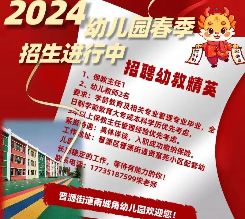 【招聘】连锁企业金绣源粥品专家晋源,小店招聘啦,店长2名:6000-10000,工资+绩效+分红+工龄,前厅经理2名:3800-4500,工资+绩效+分红+工龄,服务员3名:3200-3500,工资+绩效+工龄+提成,收银2名:3500-3800,工资+绩效+储值奖励+工龄,传菜2名:3200-3500,工资+绩效+工龄,厨师长2名:5000-7000,工资+绩效+分红+工龄,炒锅5名:4500-5000,工资+绩效+分红+工龄 ,配菜1名:4000-4800,工资+绩效+工龄,长期的半天班早10点到中午3点,下午班晚5点到晚10点,工资面议,应聘地址:小店区,晋源区文庭半里小区商铺金绣源粥品专家,联系方式:13623460125肖店长