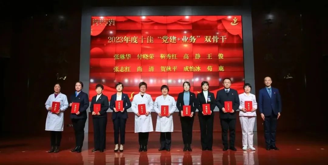党委书记王大忠为2023年度十佳“党建+业务”双骨干获得者代表领奖。