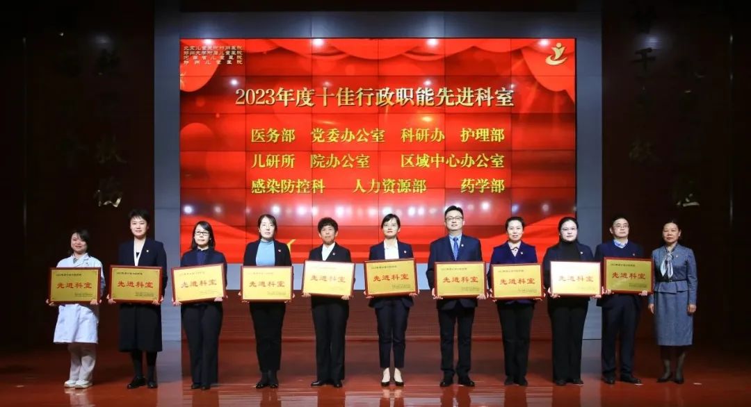 院长张杰为国家儿童区域医疗中心2023年度十佳科技、技术创新先进科室代表颁奖。