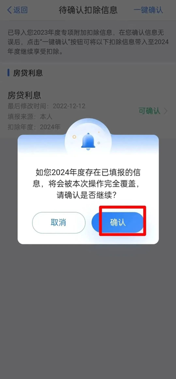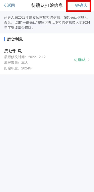 完成后,如您2024年还有其他继续享受的专项附加扣除,可点击“一键确认”完成信息提交。