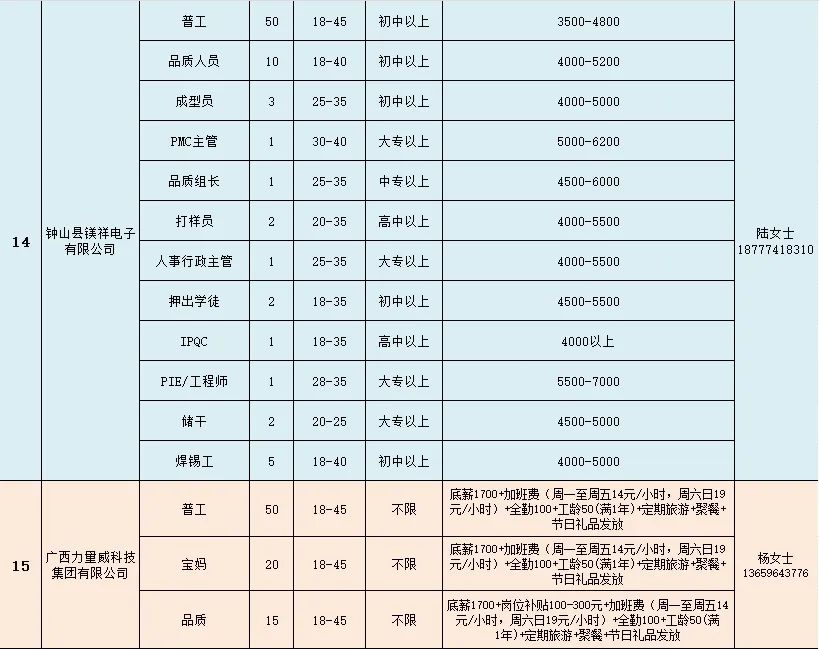 4.薪资待遇:白班15块/小时,夜班16块/小时,宵夜免费,日薪165-176元/天,家门口的工作,每月20号结上月工资;