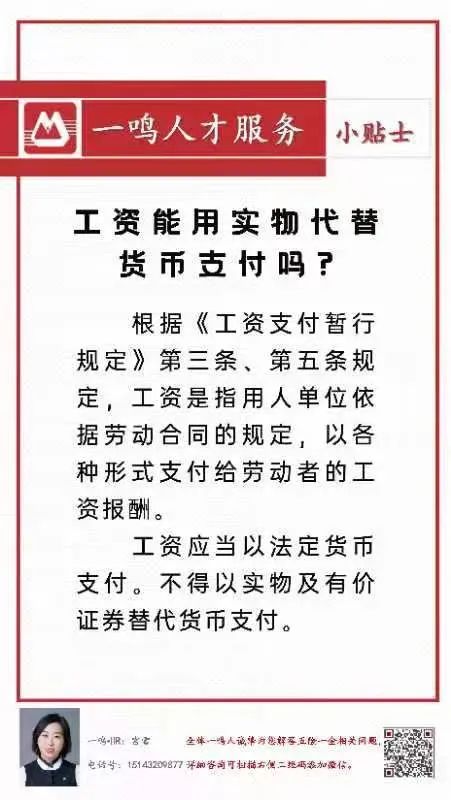 >【HR·小贴士】工资能用实物代替货币支付吗?