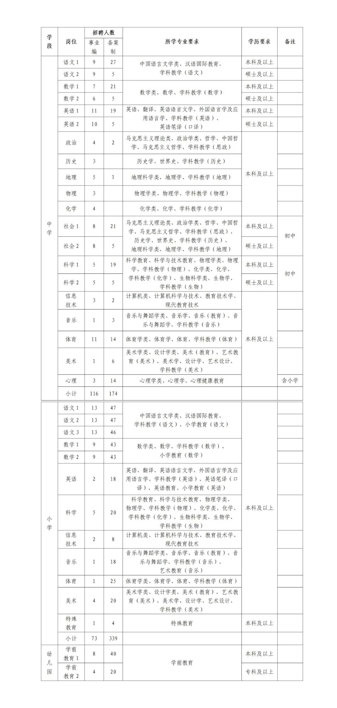 为满足我市中小学及幼儿园师资需求,2024年我市将招聘中小学教师702名(其中事业编教师189名,备案制教师513名),招聘幼儿园教师72名(其中事业编教师12名,备案制教师60名),现将公开招聘有关事项公告如下: