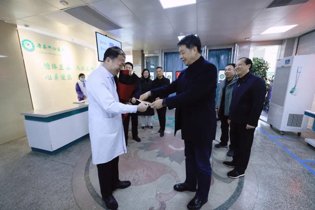 2月2日,县政府党组成员、先进制造业开发区党工委副书记、纪工委书记李朝阁,县委组织部副部长杨永利,县卫健委党组书记、主任徐建立,县卫健委党组成员、副主任刘媛媛对我院技术人才开展走访慰问,并致以节日的问候和新春的祝福。