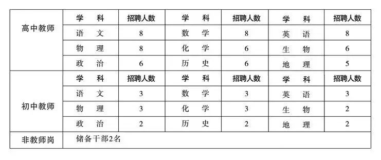 原则上全日制本科以上学历、具有10年以上初高中教学经历,至少有两届初高三教学经历;德能兼备,教学成绩突出;荣获县级以上骨干教师、优秀教师、学科名师等荣誉称号;年龄男50周岁以下,女45周岁以下,特别优秀者年龄可以放宽。
