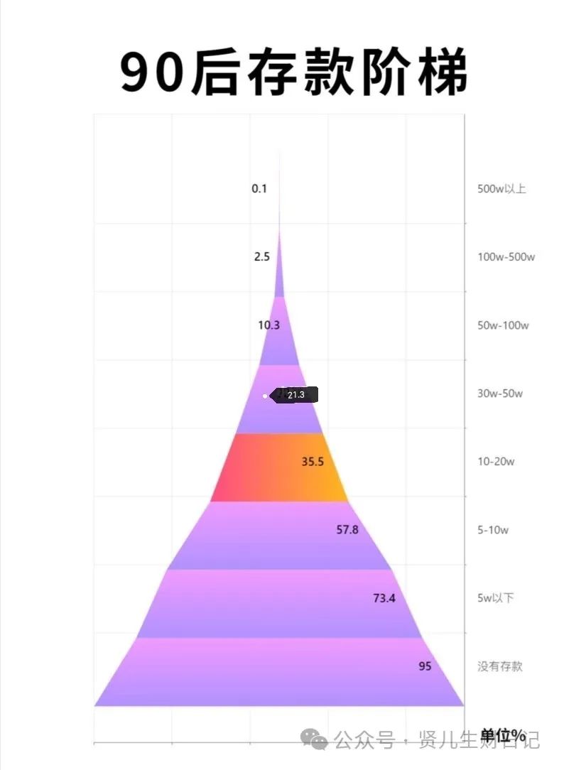 嗨,你好哇!我是爱搞钱又爱养生的90后全职妈妈贤儿。看完数据我都觉得有些惊讶,这是目前90后的一个存款状况。没错,现在的环境更是没得说, 很多90后还都是负债,只是调查表格没显示出来。很多的90后都是月光族,存款只有三位数或者四位数,也不怪90后存款少,实在是现在社会太卷了,普通人没背景没关系,没资源靠拿死工资,再加上现在的消费水平,一年下来能存个一两万已经是非常非常厉害的了。