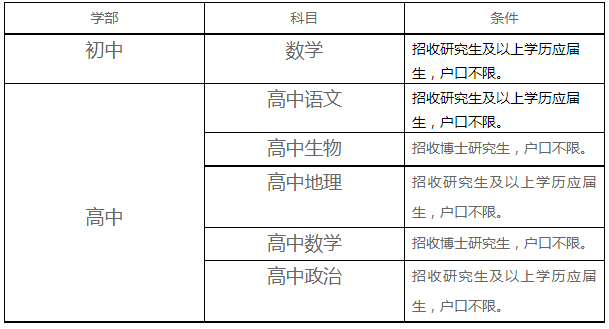 北京师范大学昌平附属学校是北京师范大学和北京市昌平区人民政府联合举办,北京师范大学第二附属中学承办的十二年制公立学校,与北京师范大学第二附属中学实行一体化管理。学校现有学生2000余人。学校教师队伍由全国招聘的双一流高校优秀毕业生和有工作经验的骨干教师组成,专任教师中百分之六十以上具有硕士研究生及以上学历,部分具有海外学习和工作经历。1.培养方式为非定向(不含定向、委培)的全日制本科及以上学历全日制普通高等院校2023年应届毕业生;2.本科毕业生25周岁以下(1998年1月1日及以后出生);硕士研究生30周岁以下(1993年1月1日及以后出生);博士研究生35周岁以下(1988年1月1日及以后出生)。3.2023年7月1日前能按时取得毕业证、学位证,具有对应学科教师资格证;1.培养方式为非定向(不含定向、委培)的全日制硕士研究生及以上学历全日制普通高等院校2023年应届毕业生;2.应届硕士毕业生30岁以下(1993年1月1日以后出生人员),应届博士毕业生35岁以下(1988年1月1日以后出生人员);3.非北京生源应届毕业生须符合北京市人力社保局审批的进京落户条件,未就业且在校学习期间为全脱产、未缴纳社会保险,2023年7月1日前能按时取得毕业证、学位证,具有对应学科教师资格证。1.年龄35周岁以下,具有北京市常住户口,本人档案在京;具有良好的政治素质、敬业精神和师德修养,遵纪守法,品行端正;5.具有公立学校在职教学经验者优先;具有区级骨干教师及以上称号者优先;教育培训业绩突出且有大班教学经验者优先。应聘者请将简历以“应聘类别(在编教师/实习教师)应聘学科+学段+毕业学校+姓名+籍贯”命名,发送至招聘邮箱(见关键词回复)。进行报名(切勿重复投递),否则不予理会。如您计划应聘,请回复关键词:20230318A,获取报名方式。