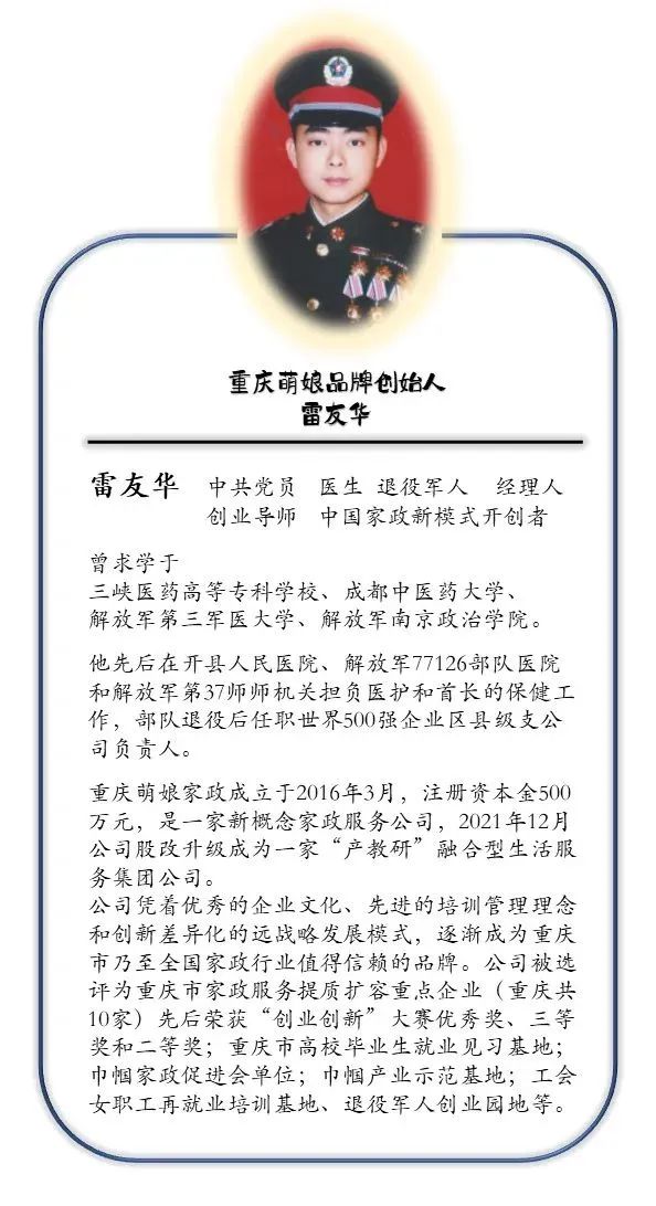 公司成立于2016年,历经多年沉淀发展,铸造了“萌娘家政”和“萌娘职教”两大品牌。公司拥有家政服务管理团队、职业教育培训管理团队和知名的博士顾问团。公司以家政服务、职业技能培训、养老护理和物业管理等为主营业务。