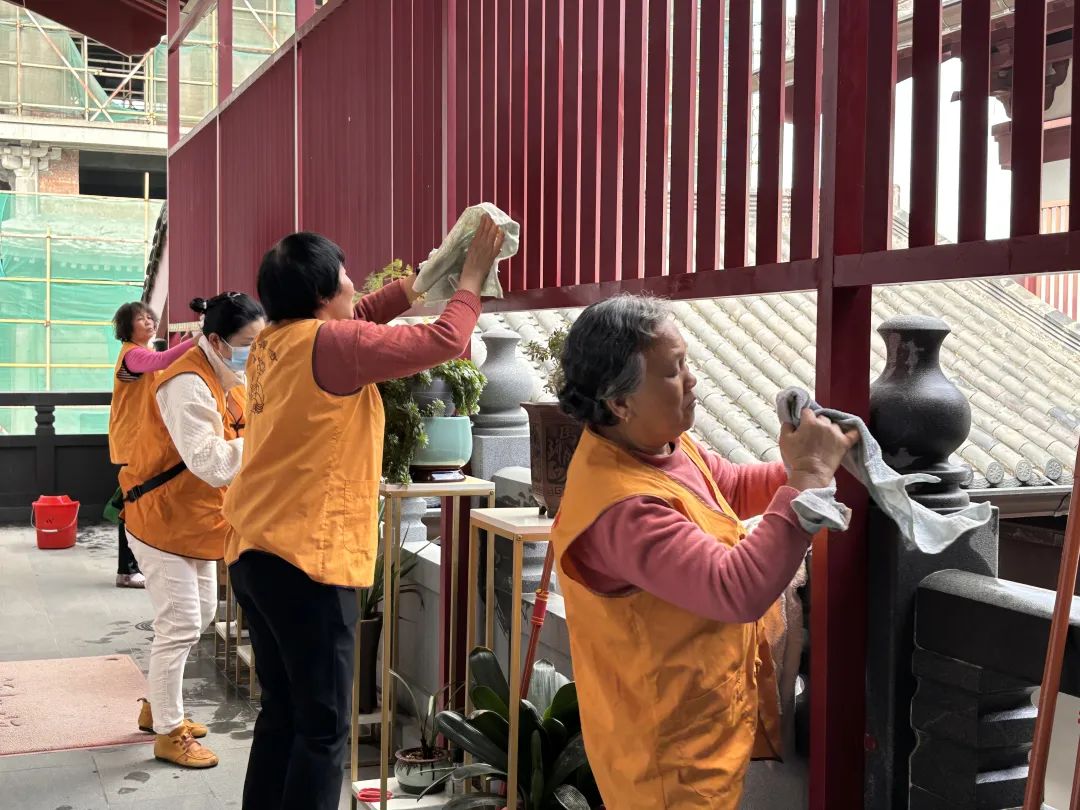 法会护持、道场清洁、秩序维安、斋堂行堂、大寮帮厨等。