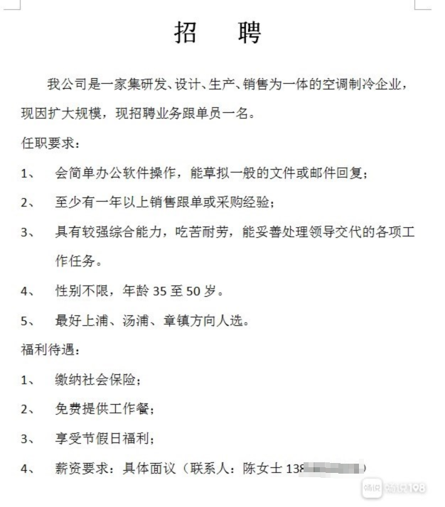 3.任何工作单位或个人都可以在畅说108发布招聘,须有详细工作地点,联系方式,单位名称。