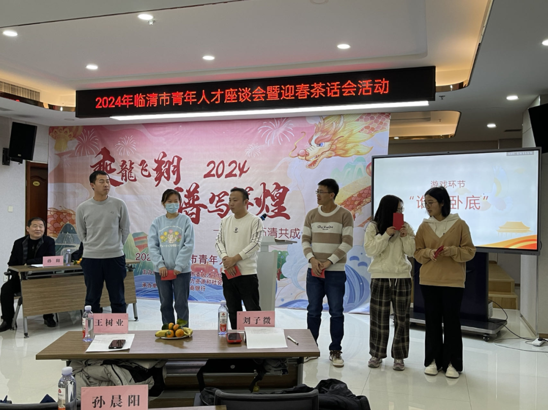 座谈会设置“谁是卧底”游戏互动环节,采用了“季羡林”、“张自忠”、“什香面”、“鳌头矶”等临清元素的词牌,让青年人才通过游戏充分了解了临清的文化底蕴,增进了对临清的城市认同感,拉近了彼此之间的距离。