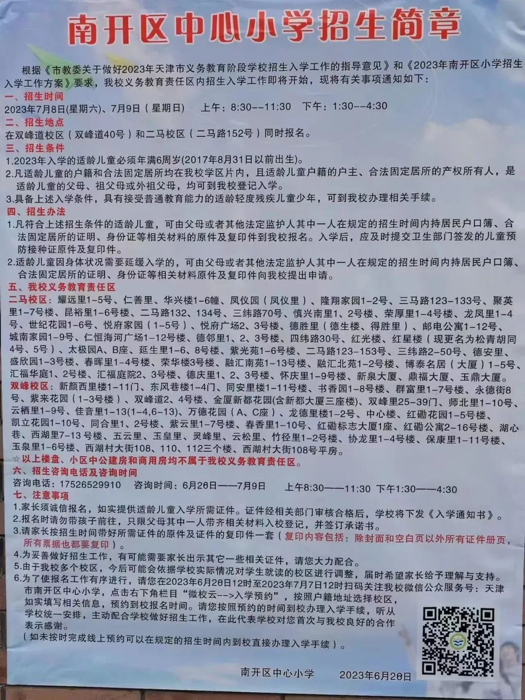 更多学校招生简章、学校简介,查询小区对口学校等,微信搜索“津学宝”小程序查看、或者识别小程序码进入小程序查看