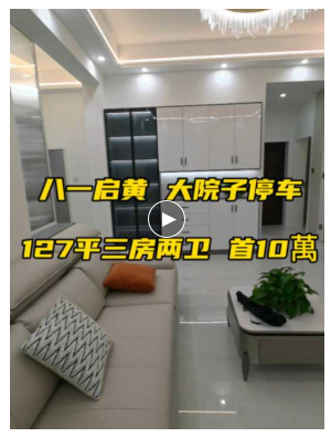 首付8万,启黄八一,127平精装三房两卫,大院子停车方便!