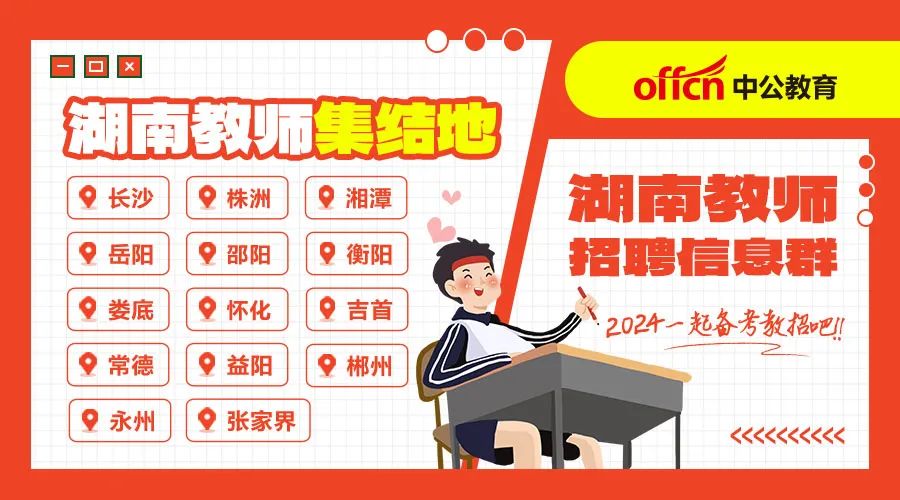 湖南中公教师考试网关注哦☀ 关注湖南省教师招聘,汇集长沙、株洲、湘潭、常德、益阳、怀化、岳阳、邵阳、娄底、郴州、衡阳、永州、吉首、张家界各地区教师招聘公告信息,提供免费备考资料、考试咨询等服务,志在打破消息壁垒,敬请关注湖南中公教师考试网。