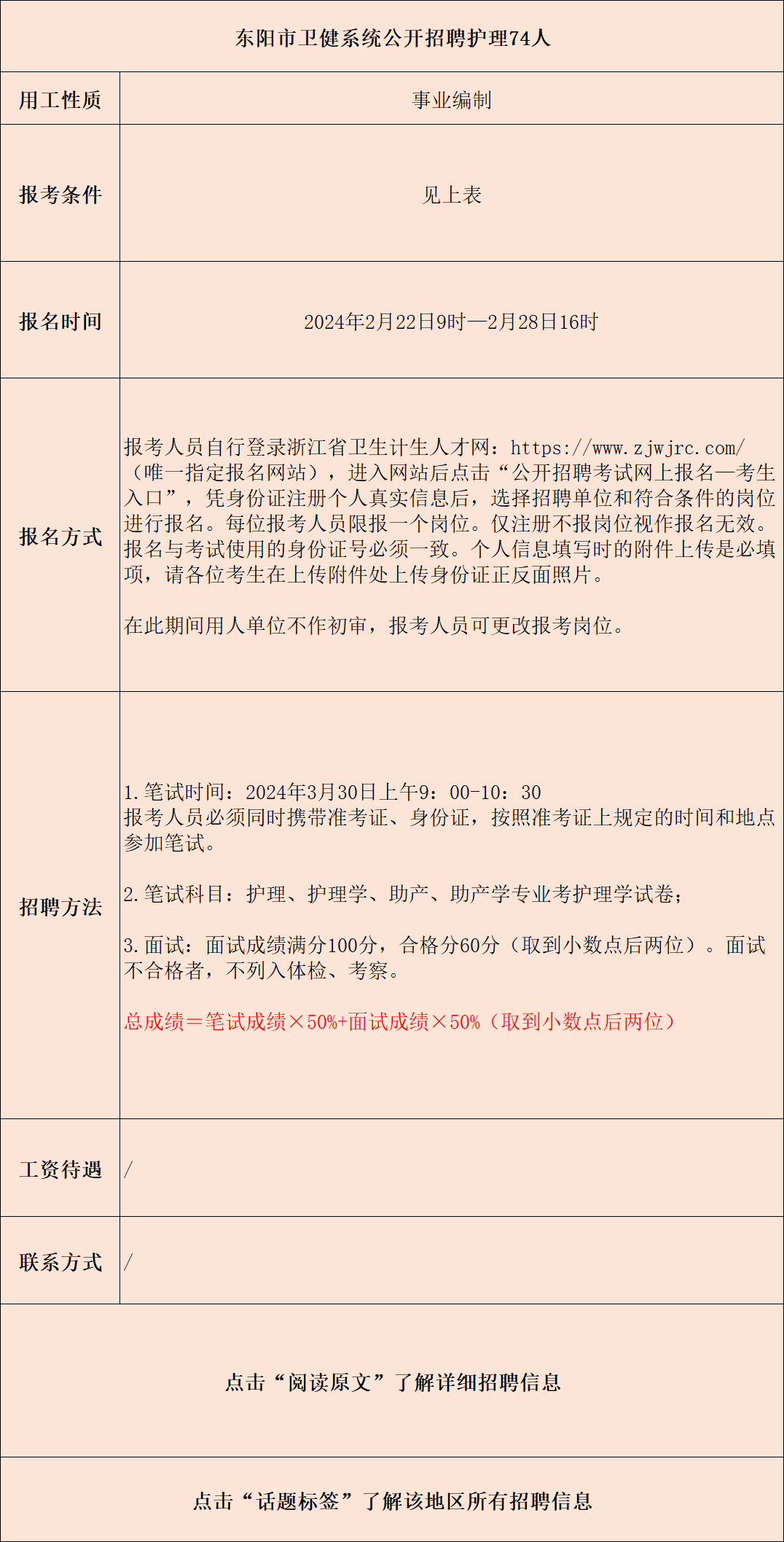 >【事业编制-大专起报】金华东阳市卫健系统公开招聘护理74人