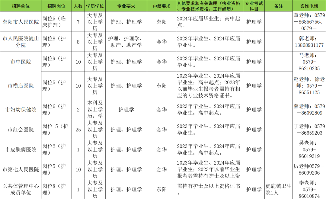 【事业编制-大专起报】金华东阳市卫健系统公开招聘护理74人