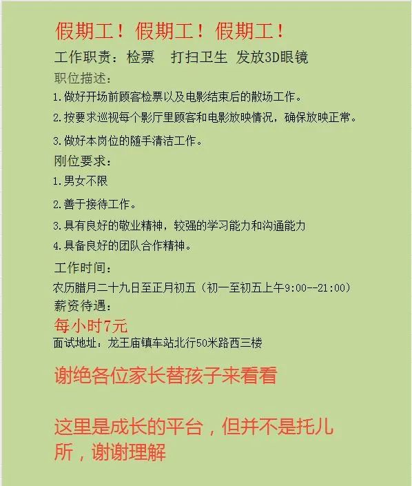 这里招聘啦!!! 戛纳国际影城龙王庙店【职等你来】!