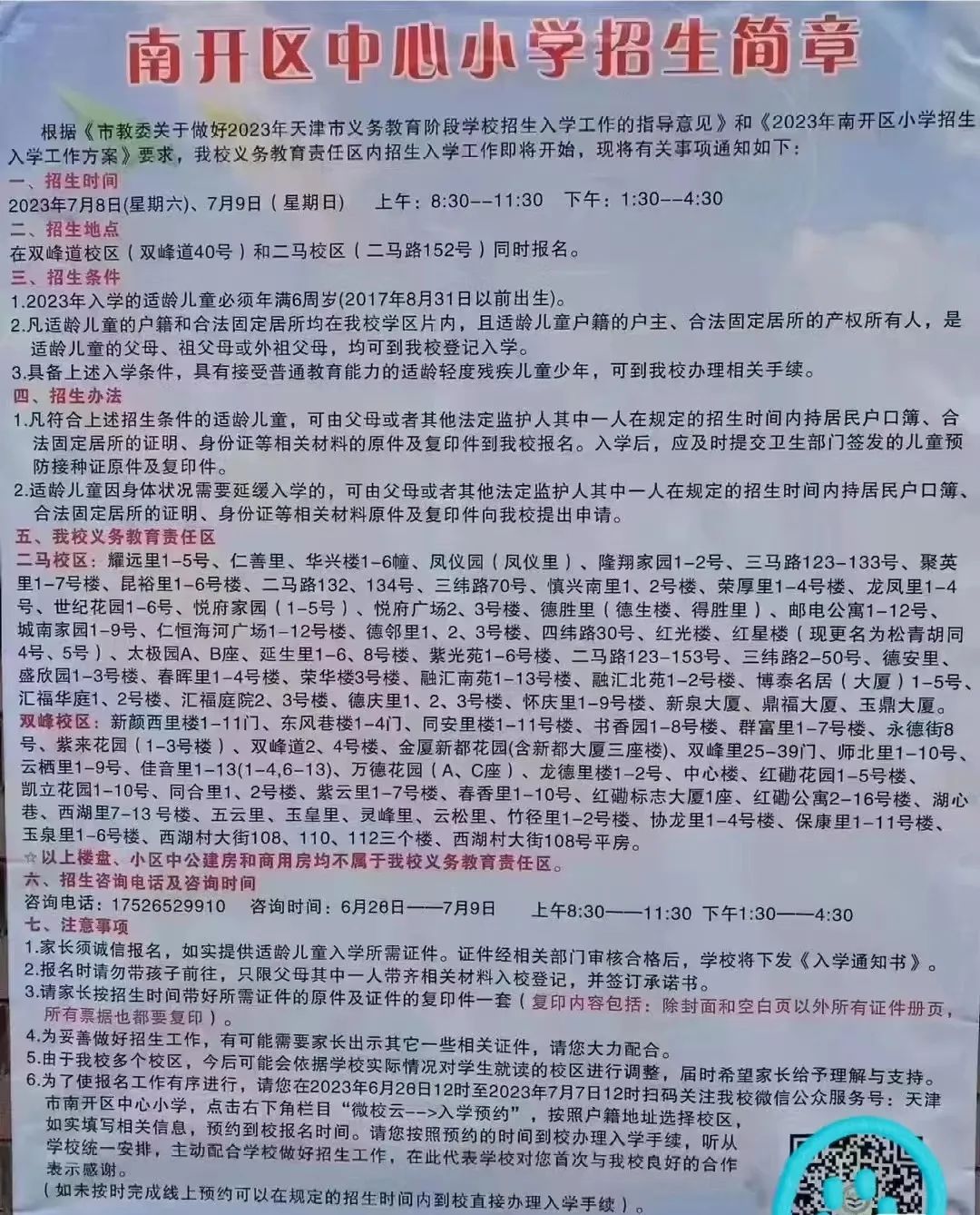 南开中心小学(原南开四马路小学),是南开区的老牌重小,前身是著名教育家张伯苓先生创办的南开学校小学部,位于南开区中心地域学校环境好,是一所天津市九年义务教育示范校,与中营小学、五马路小学并称为南开三大校。