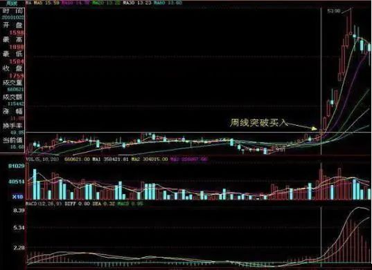 下面是一些经典的周线突破出现买点以及突破后的强势上涨走势图: