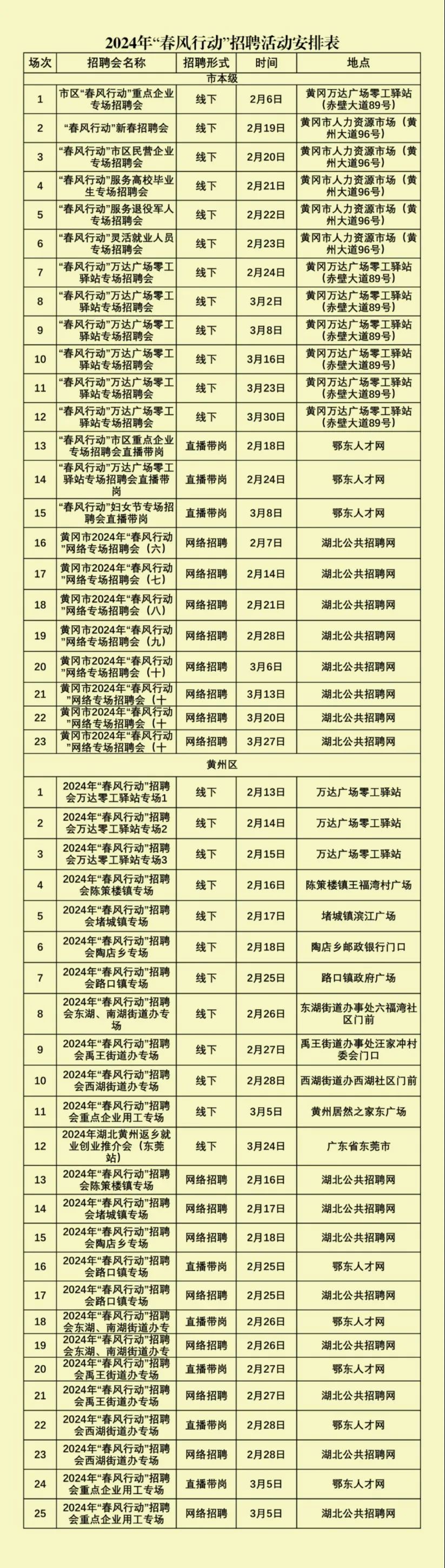 >2024年黄冈市“春风行动”招聘活动场次安排